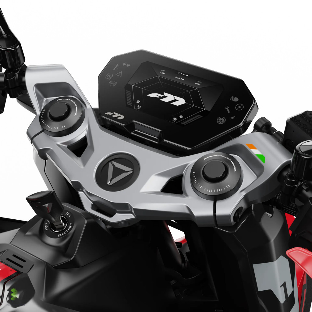 Az F77 MACH 2 nem egy olyan motor, amihez csak úgy odamész. Inkább óvatosan megközelíted. Ez a gép minden szögből tiszteletet parancsol: karakteres ívek, brutális felépítés; a formavilág minden szögből éles, agresszív és futurisztikus, a kiállás alacsony és sportos, a LED-es fényszóró pedig olyan hatást kelt, mintha egyenesen átnézne a forgalmon. Ne lepődj majd meg, ha az emberek gyakran megállnak majd és visszanéznek rá, még akkor is, amikor csak parkol. Az F77 MACH 2 sem kinézetére, sem pedig tulajdonságaiban nem egy tipikus indiai motor, hanem egy prémium termék, amely európai szintű dizájnt, indiai alapokat és a jövő elektromos technológiáját ötvöz; ha benzines street bike-okhoz vagy szokva, ez gép olyan, mintha belépnél a jövőbe.